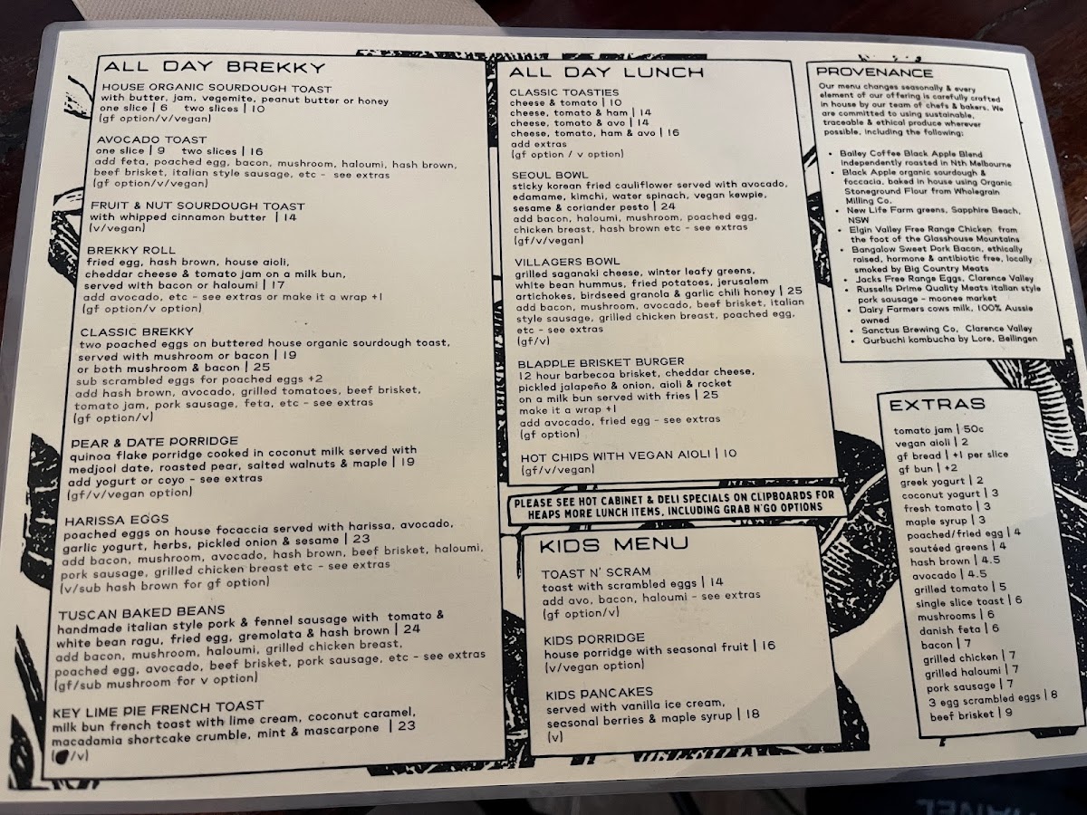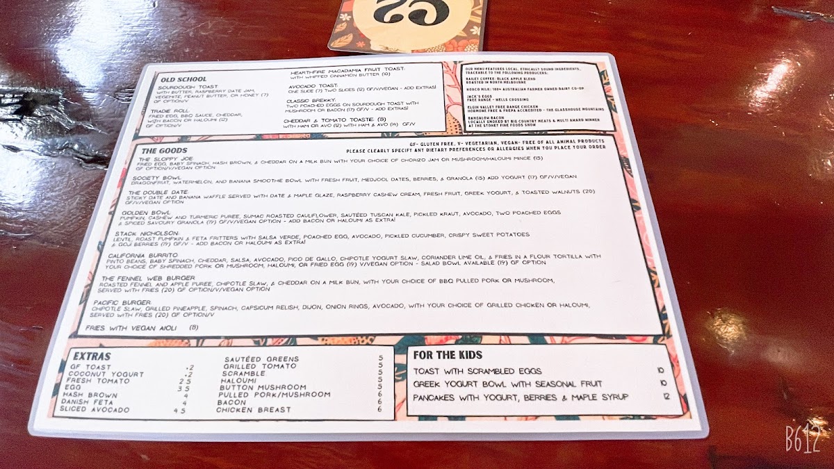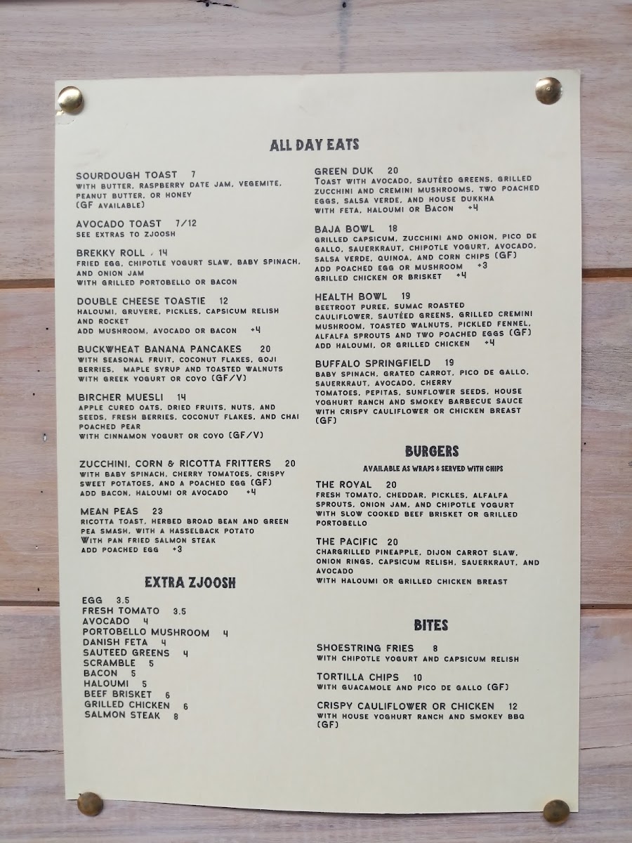 - Old School: Traditional and simple food options such as Sourdough Toast, Tradie Roll, Macadamia Fruit Toast, Avocado Toast, Classic Brekky, and Cheddar & Tomato Toastie, ideal for breakfast or a light, casual meal.